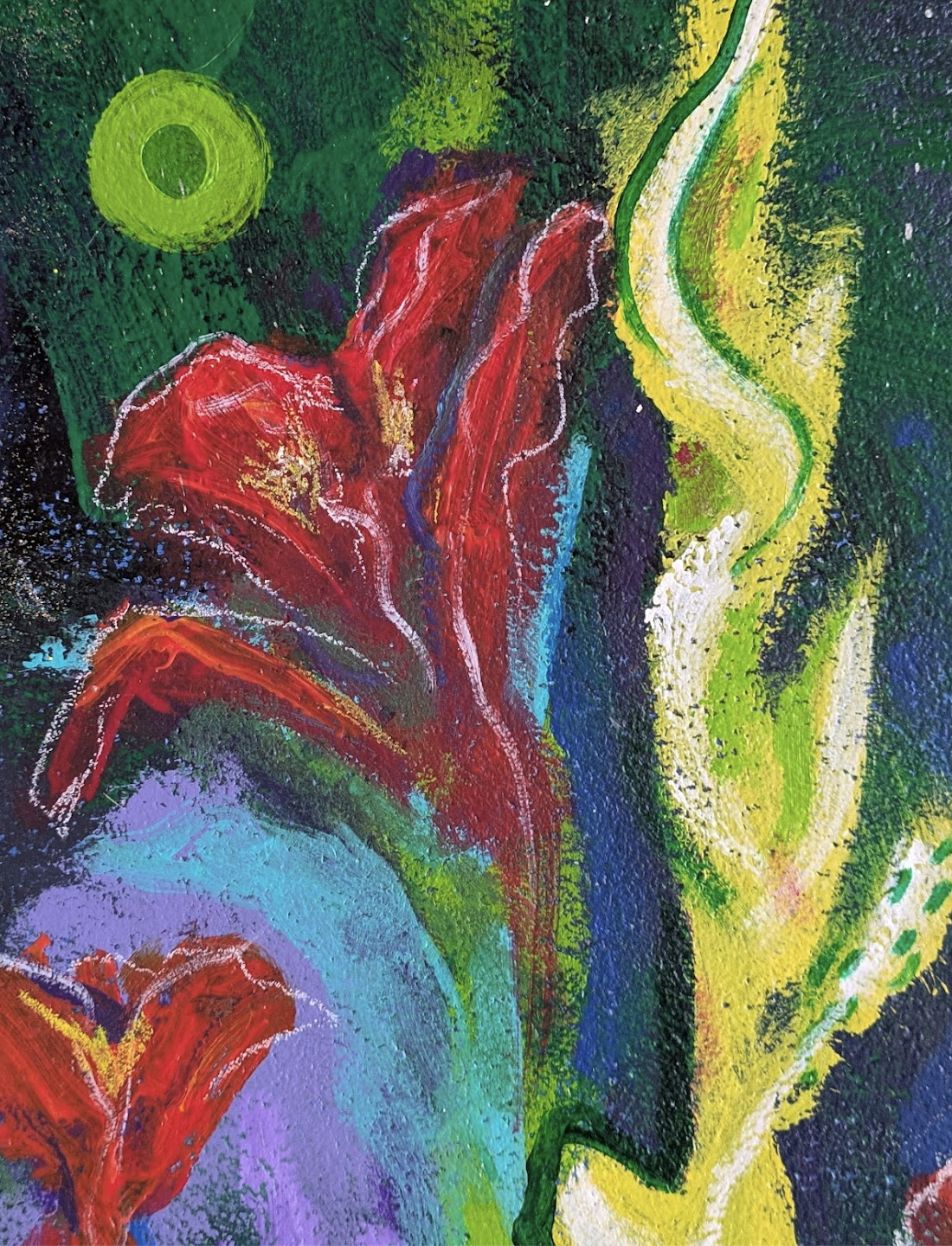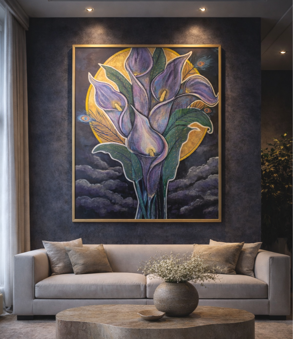 The Sanctuary Paintings - These large scale works were created during a time of isolation and reflection. They transform stillness into bold color with wild botanicals, gold light, and skies that speak to renewal, resilience, and beauty. Each painting is deeply spiritual, highly symbolic and firmly rooted in nature.